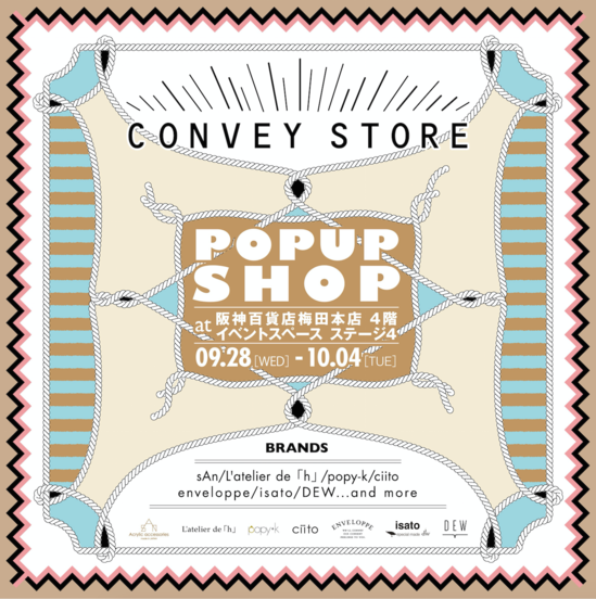 POP UP SHOP 「CONVEY STORE」 2016年9月21日 old post 阪神阪神百貨店梅田本店にて開催されるポップアップショップ「CONVEY STORE」にciitoのアクセサリーが並びます。 今月28日から10月4日までに一週間で、場所は4階イベントスペースです。 ※期間中は、CNOVEY STOREの方々が応対してくださいます POP UP SHOP「CONVEY STORE」 日時:2016年9月28日(水)〜10月4日(火) 場所:阪神百貨店梅田本店4階ステージ4 //////////////////////////////////////////////////////////////////////////// Newer Post winter spiral jewelry 2016 Older Post EXTRA PREVIEW #13